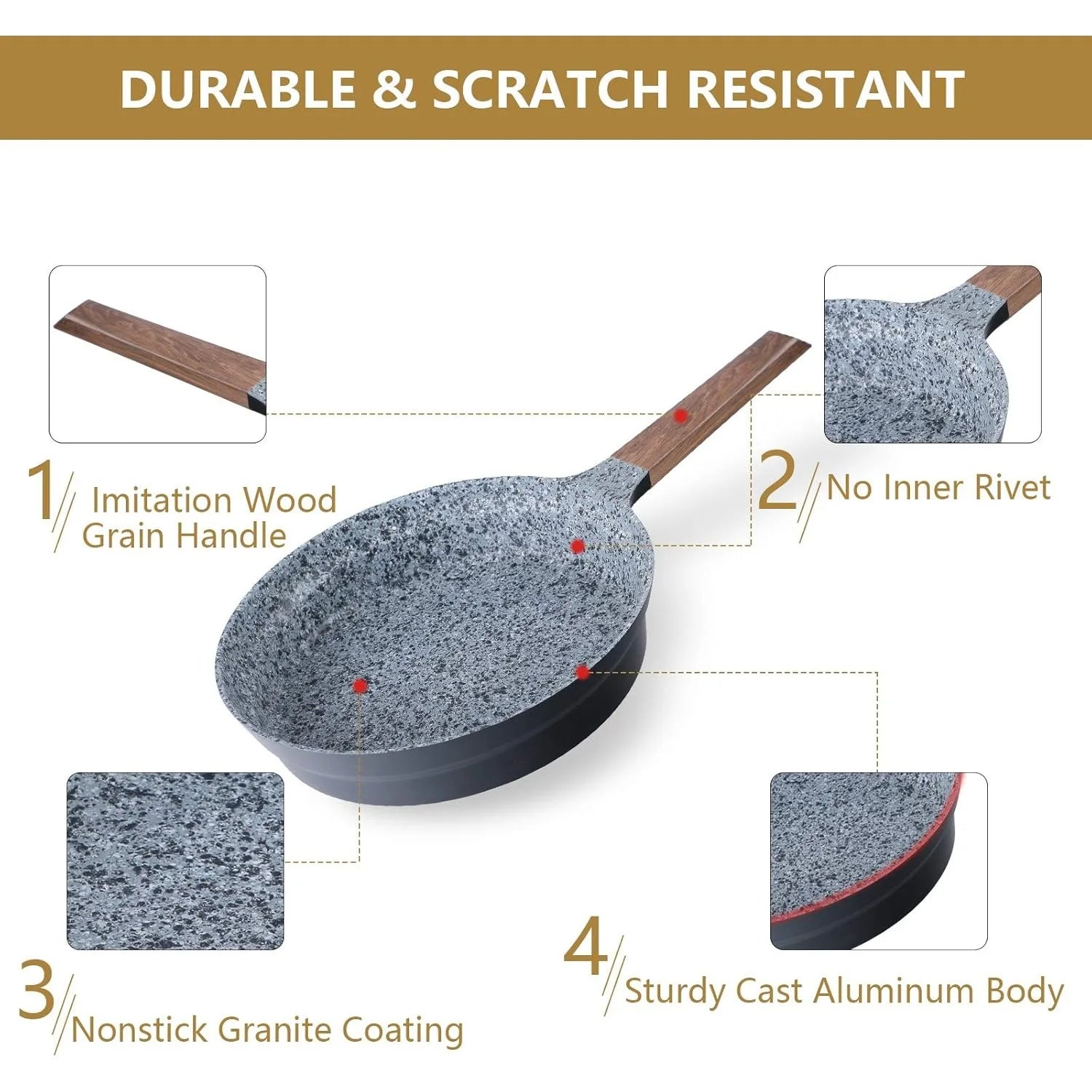 Crafted from high-quality die-cast aluminum, this cookware set ensures fast and even heating, perfect for all types of cooktops, including induction. The granite coating provides superior non-stick capabilities, allowing you to prepare healthier meals with less oil, while also maintaining the natural flavors of your ingredients.
