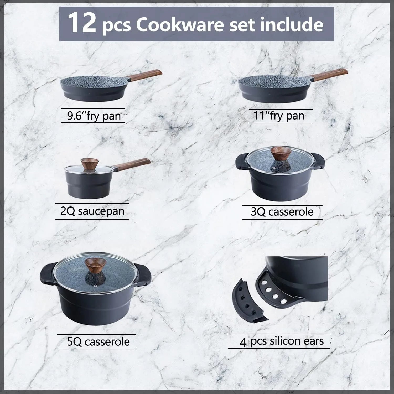 Cast Aluminum Pots and Pans Set Non Stick 12Pcs Induction Cookware Set