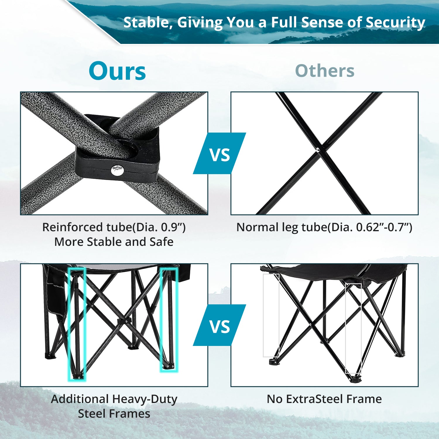 - Durable & Heavy Duty: Constructed with thick, sturdy steel pipes and an innovative X-shaped reinforcement, this camping chair is built to last.