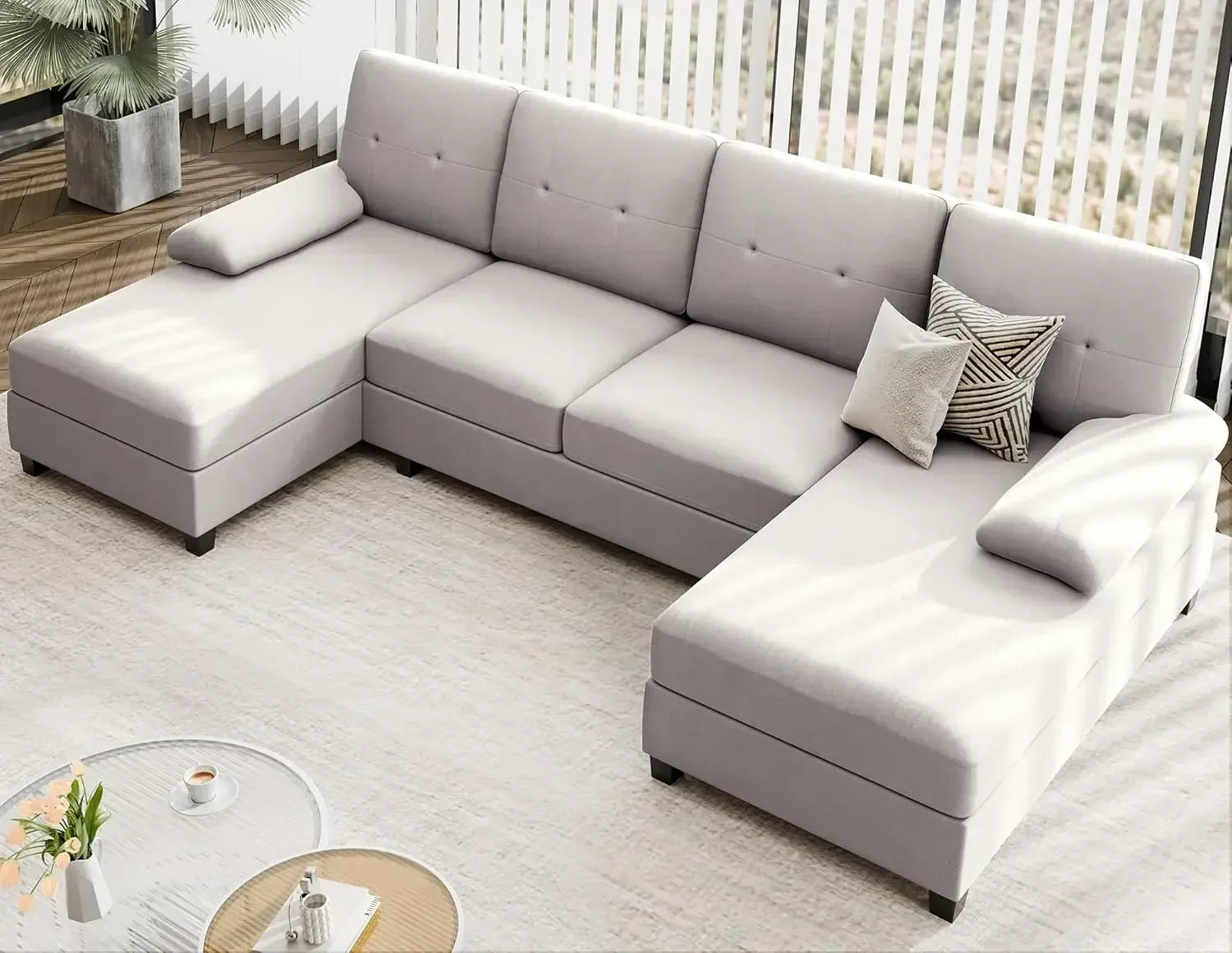 Sectional Sofa Couch, 4 Seat U-Shaped Sofa Couch with Double Chaises